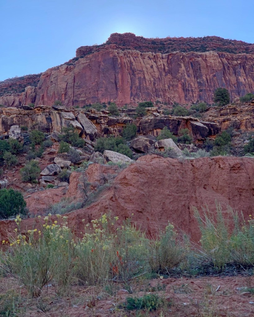More luckily, however, the beautiful drive I had in the daylight from Denver to Grand Junction was a great start to the trip– I’d never driven through the Rockies before and two words: holy cow. Literally was in awe of something new after turning each new corner or bend in I-70– and the golden hour light that increased as the afternoon waned on made it all the more immaculate. If it hadn’t all been off the interstate + my time crunch to get to Moab to see some friends for the first night, I would’ve loved to have stopped more frequently to admire and snap some pics. Also didn’t have an SD card for my Olympus, at the time….. Rookie mistake 💀